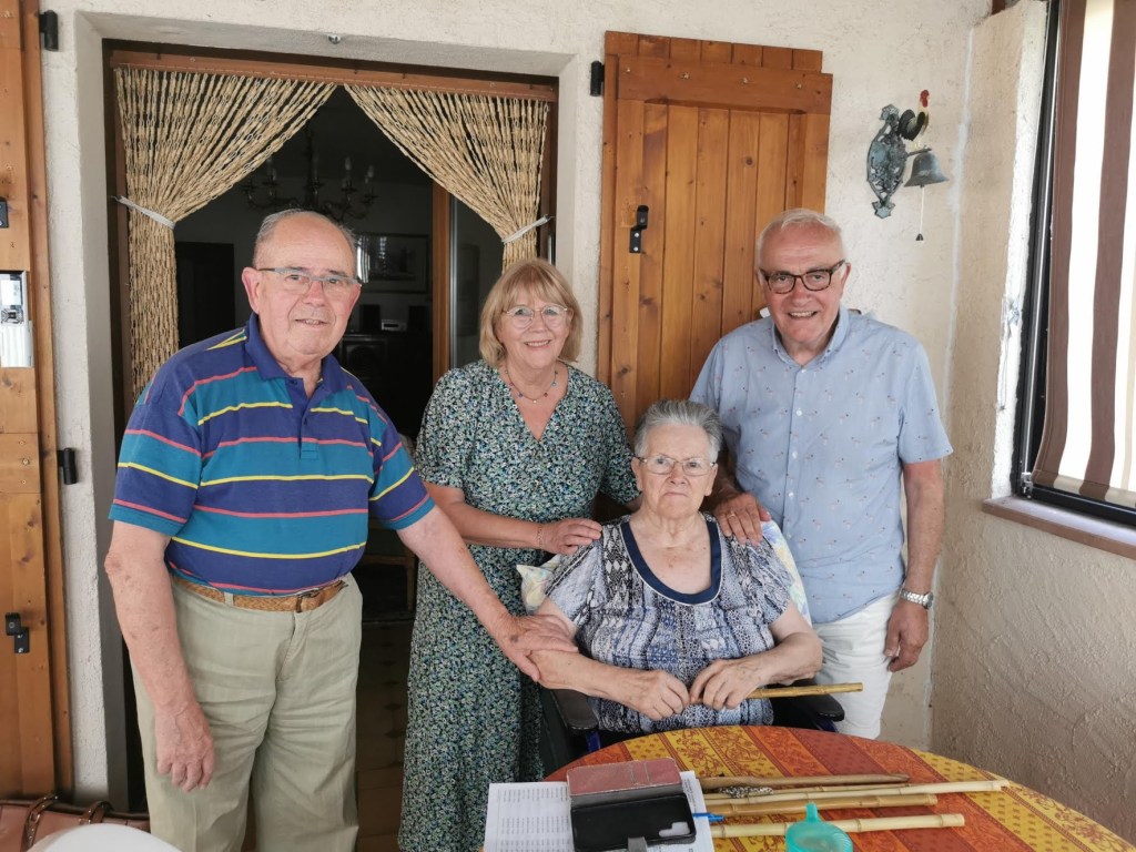 14 mai 2020; le Journal de Millau publiait un article intitulé «chronique d’un confinement de 1939 à 1945». Cet article parvint à la connaissance de deux professeurs de l’Université de Birmingham en Angleterre. En vérité, il n’y a pas de hasard: les deux professeurs ont des attaches anciennes et personnelles avec notre région. Patricia et Yves Milhavy se sont rencontrés lorsqu’ils étaient jeunes étudiants à la faculté des Lettres de Montpellier. La famille d’Yves Milhavy a des origines millavoises et nord-aveyronnaises. Aujourd’hui à la retraite à Birmingham, ils continuent de donner des cours de français à des élèves adultes ou retraités qui aiment la France, notre langue, notre culture et notre histoire locale. L’article du Journal de Millau (dont nous ignorons comment il leur est parvenu) a aiguisé leur curiosité. Ils ont souhaité connaître leur auteur et c’est ainsi que Patricia Milhavy a demandé à Alexis Baldous (dont l’épouse Madeleine a été professeur d’anglais) s’il accepрterait qu’elle utilise certains articles de son blog pour ses étudiants; Ce fut le début d’échanges qui ont conduit à cette rencontre improbable mais tellement sympathique. Elle a eu lieu le vendredi 5 août à Mostuéjouls où Patricia et Yves avaient séjourné il y a plusieurs années. Nos racines sont profondes; elles donnent parfois naissance à des rhizomes qui franchissent le temps et l’espace. Nos écrits eux-mêmes n’ont pas de frontière. Rien ne les arrête même pas le Brexit…