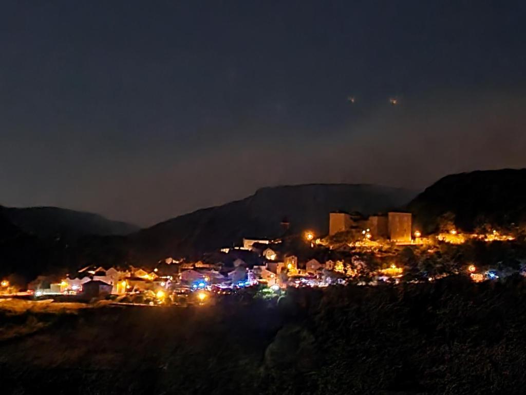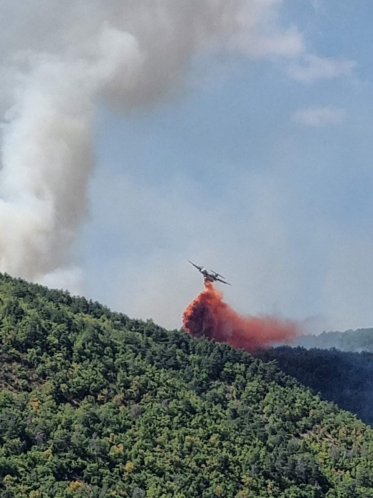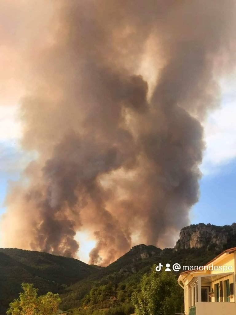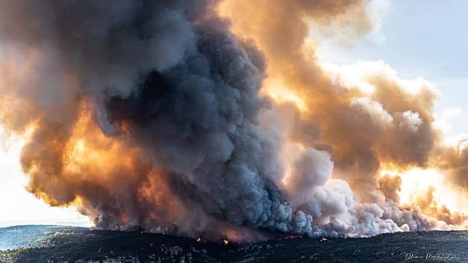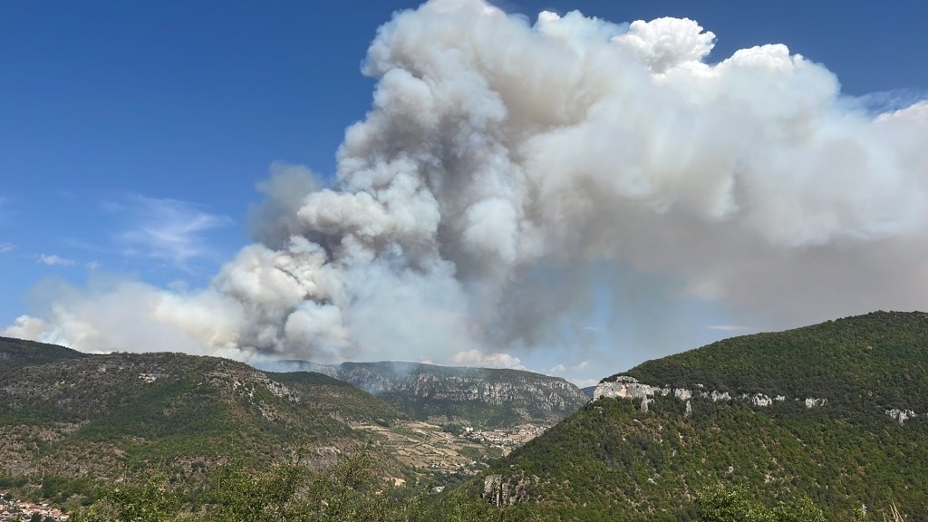 Un adage dit qu’il ne faut pas réveiller le chat qui dort. En effet, dans la nuit alors que tout paraissait calme, le vent a tourné et a réveillé le feu qui a repris de plus belle. Poussée vers l’Est cette fois-ci, les flammes sont parties dans la direction de Bellevieille et du Vors dont les bâtiments n’ont pas subi de dommages. Mais surtout le feu s’est engouffré dans le ravin du Rio des Arziolles ravageant les deux flancs de la vallée, à l’ouest la vieille route du Massegros jusqu’aux abords de Mostuéjouls et sur l’autre versant poussé par un vent furieux alimenté par la chaleur de l’incendie, le feu dévalait dangereusement en direction de Comayras et embrasait les falaises avant Liaucous. Un énorme panache de fumée s’est formé en direction du Rozier. Dans l’urgence et face à un incendie qui prenait les caractères d’un feu incontrôlable, les habitants de Mostuéjouls, Comayras, Liaucous, Saint-Pal, la Muse ainsi que les campings ont été évacués par la Gendarmerie dans l’après-midi du samedi 13. À nouveau avec l’aide d’amis et de membres du Conseil municipal et malgré la fatigue, nous sommes repartis à Millau comme nous étions venus, chez nos hôtes dont la fatigue était largement égale à la nôtre sinon plus.