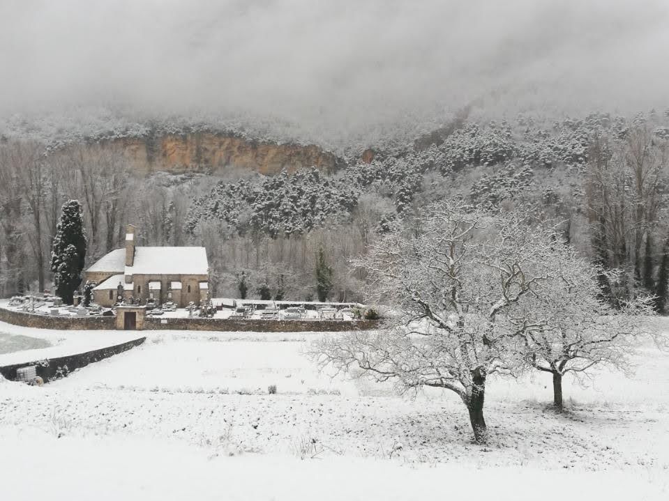 parfois même de neige. Le Causse Noir domine alors une vallée blanche. Plus