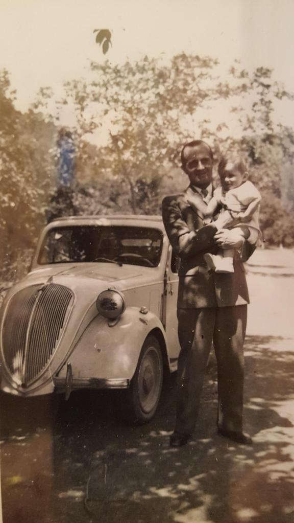 La Rosengart du Docteur René Codomié était en fait une Simca 5 comme en témoigne cette photo prise en 1943 où il porte son fils dans ses bras. Elle m’a été communiquée par Pierre Codomié, son petit-fils, que je remercie amicalement. Le Docteur René Codomié a été le Médecin de la Vallée pendant la guerre. Il a été notre Médecin de famille et par-delà le temps je souhaite lui dire notre gratitude et lui exprimer mes sentiments confraternels.