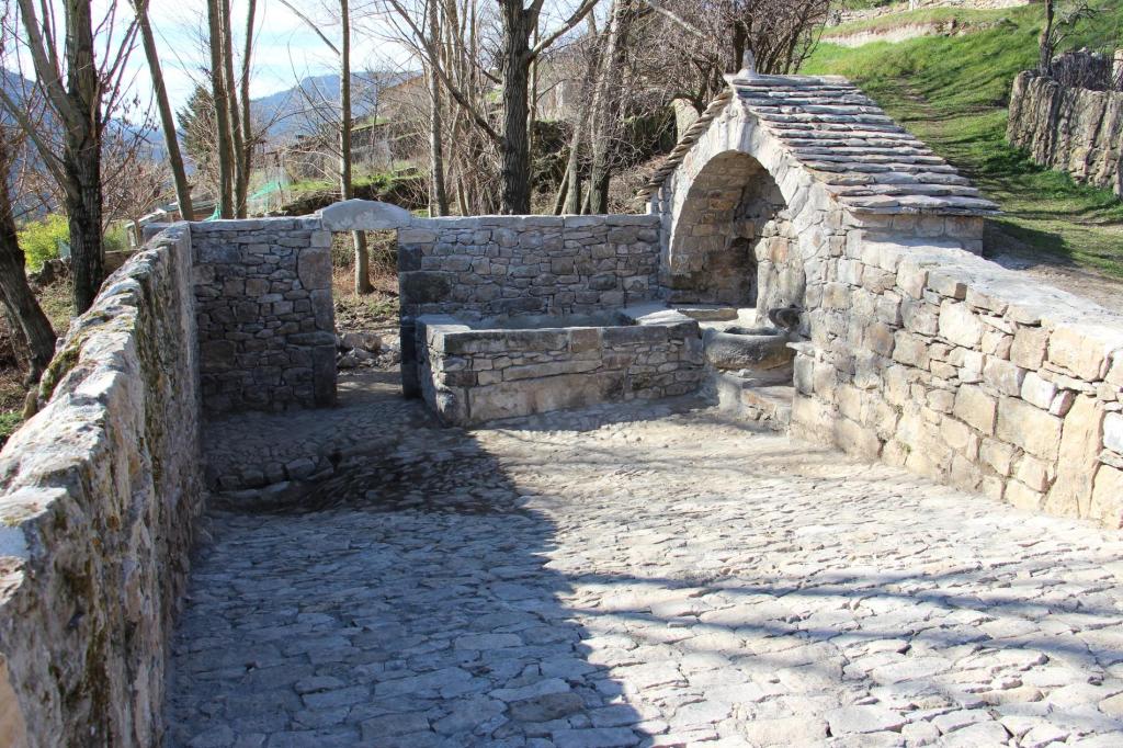 Par sa situation, au Sud, la fontaine bordait la partie supérieure du pré de la Fons. Au Nord, elle était en contrebas d’une route qui conduisait autrefois au village, mais qui au fil du temps, était devenue un chemin étroit et sans issue. Cette route avait été remplacée par la voie actuelle d’accès au village plus large et plus carrossable. Finalement, plus personne ne passant devant cette fontaine, elle était tombée dans l’oubli, subissant le sort habituel des zones désertées. Elle a été progressivement envahie de mauvaises herbes, de ronces et d’arbustes qui ont déchaussé ses pierres. Puis elle a servi de dépotoir à toutes sortes de déchets. Tant qu’à disparaître, autant qu’elle serve à quelque chose. Elle est devenue une décharge …